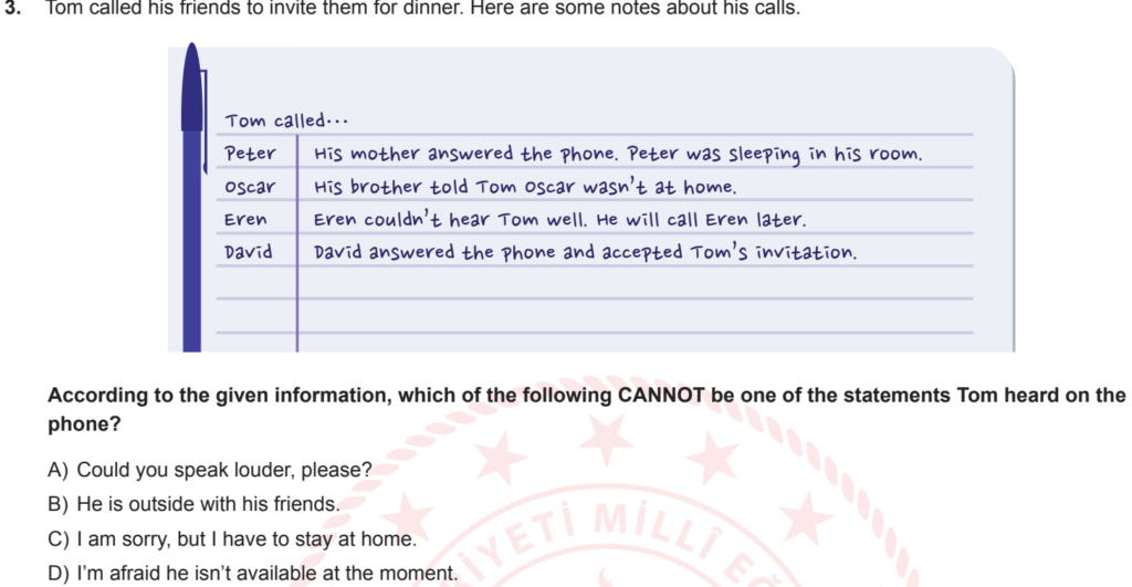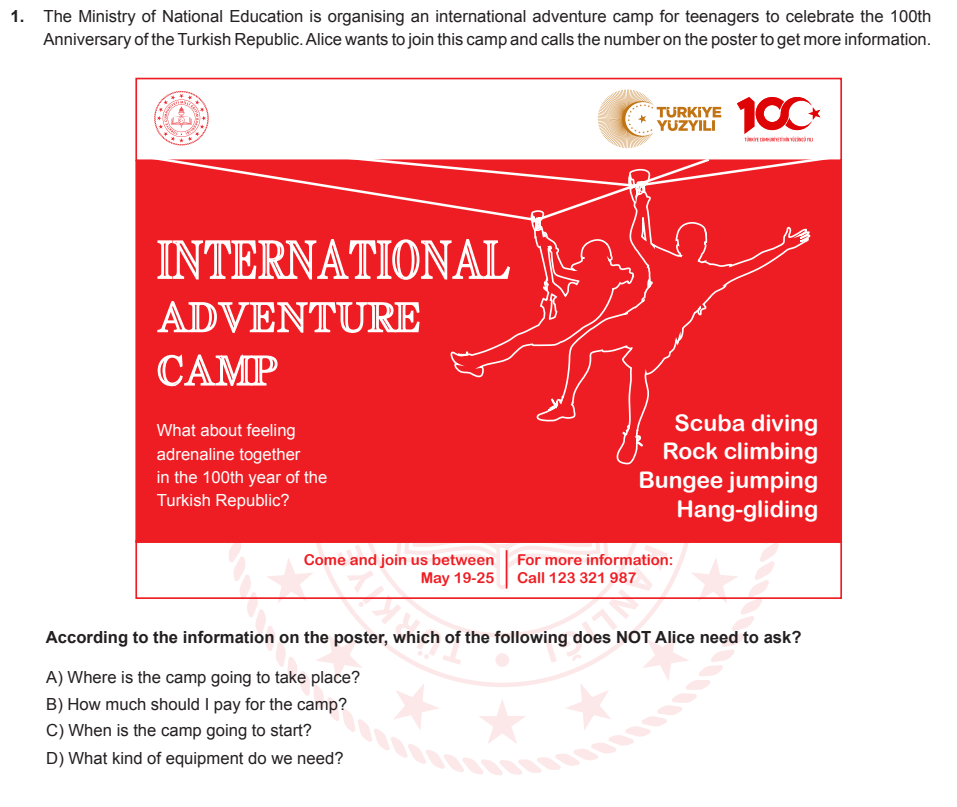 8. Sınıf LGS İngilizce Örnek Soruları (Şubat 2024)