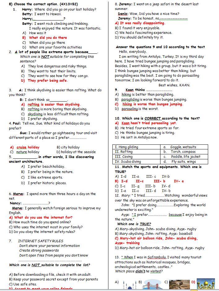 Daha Fazla 8. Sınıf İngilizce 2. Dönem 1. Yazılı