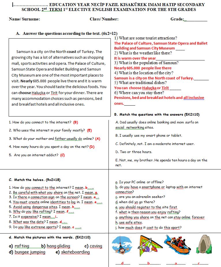 8. sınıf ingilizce 2. dönem 1. yazılı soruları en güncel haliyle ingilizceciyiz.com’da. Sitemizde 8. sınıf ingilizce yazılı soruları ve cevapları sürekli olarak güncellenmektedir.