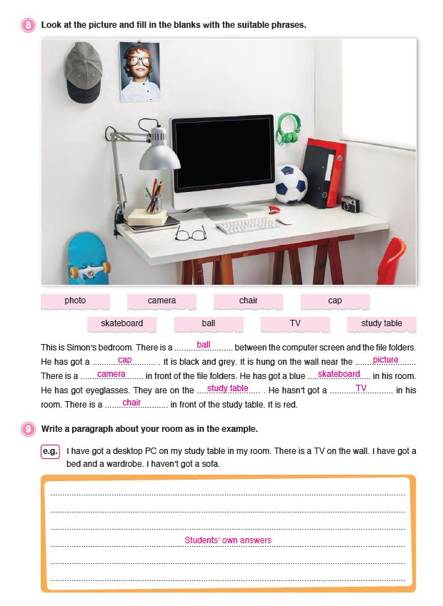 9. Aktivite Cevapları (Odanızla ilgili örnekteki gibi paragraf yazınız)