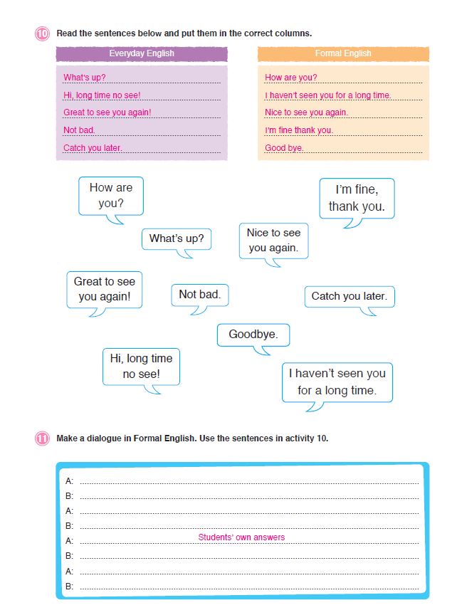11. Aktivite Cevapları (Resmi İngilizce bir diyalog yazın. Aktivite 10daki cümleleri kullanın)