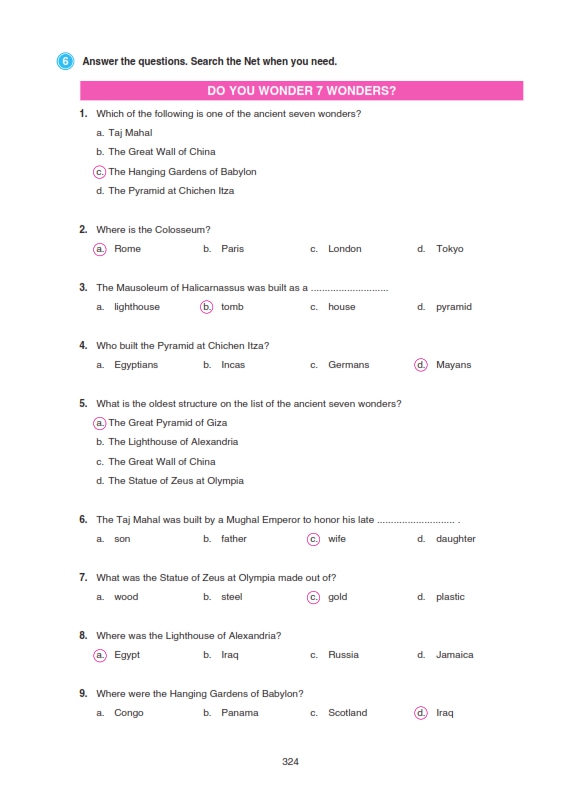Sayfa 7 Cevapları (Erkad Yayıncılık Workbook-Çalışma Kitabı)