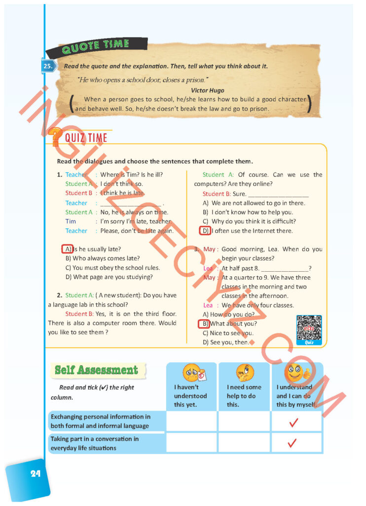 10. Sınıf İngilizce Ders Kitabı Pasifik Yayınları Sayfa 24 Cevapları