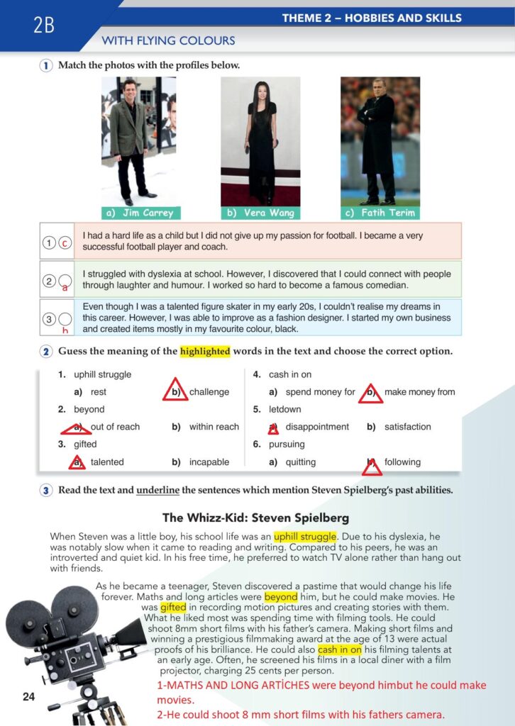 3- Read the text and underline the sentences which mention Steven Spielberg’s past abilities. (Metni okuyun ve Steven Spielberg’in geçmiş yeteneklerinden bahseden cümlelerin altını çizin.)