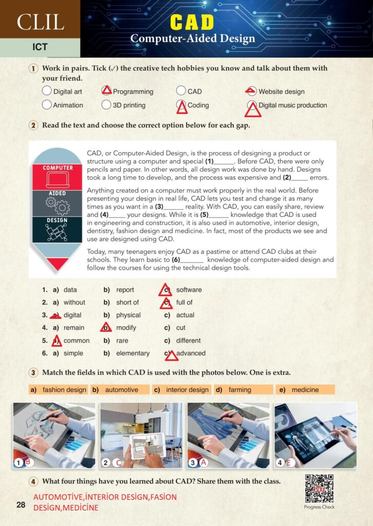 4- What four things have you learned about CAD? Share them with the class. (CAD hakkında hangi dört şeyi öğrendiniz? Bunları sınıfla paylaşın.)