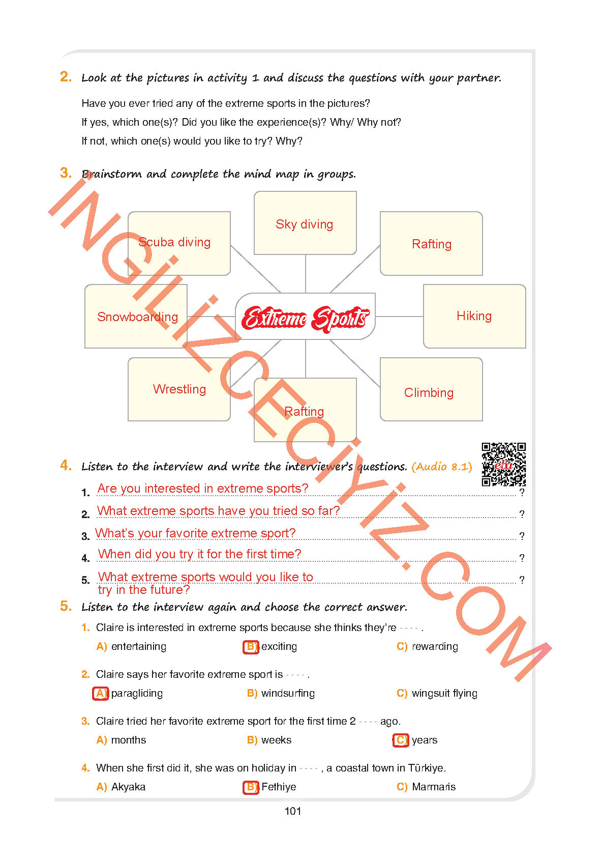 11. Sınıf Yıldırım Yayınları İngilizce Ders Kitabı Sayfa 101 Cevapları