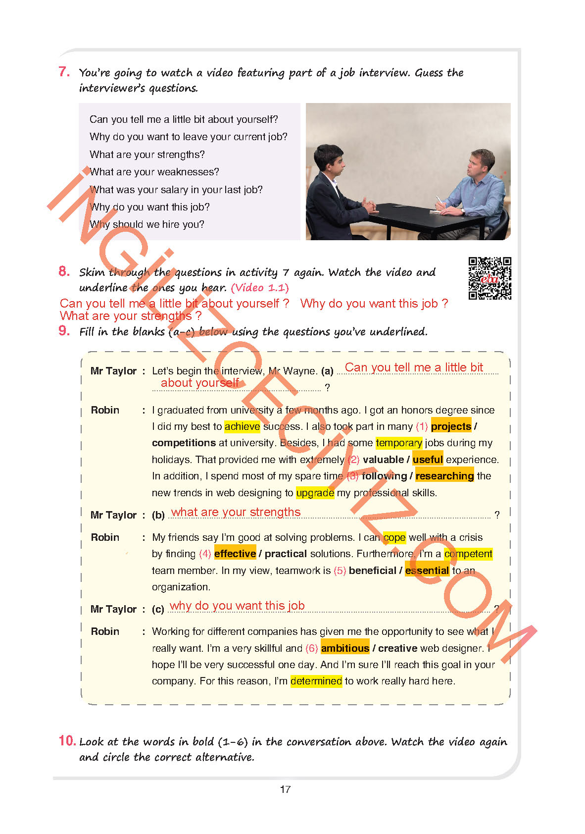 11. Sınıf Yıldırım Yayınları İngilizce Ders Kitabı Sayfa 17 Cevapları