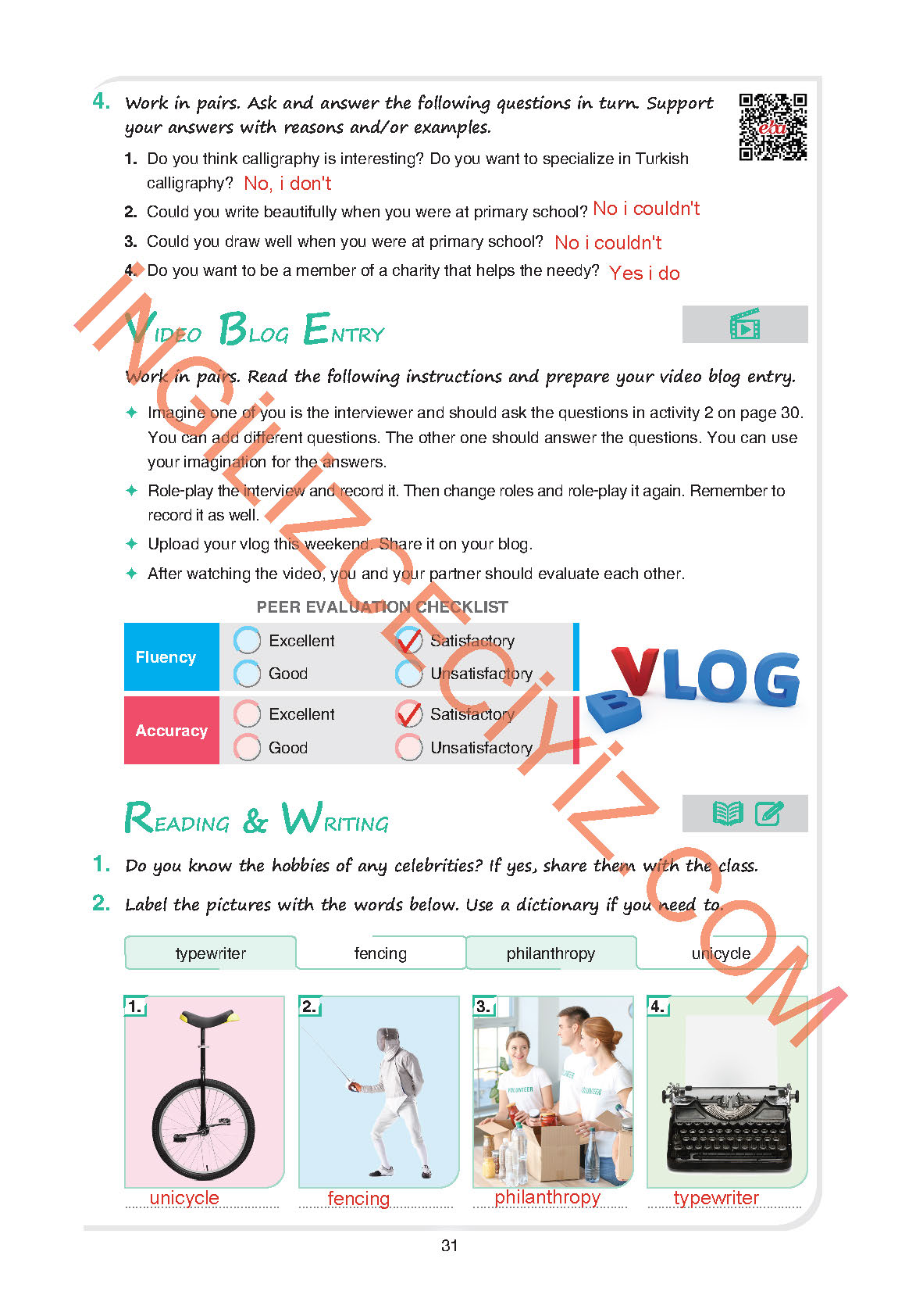 11. Sınıf Yıldırım Yayınları İngilizce Ders Kitabı Sayfa 31 Cevapları