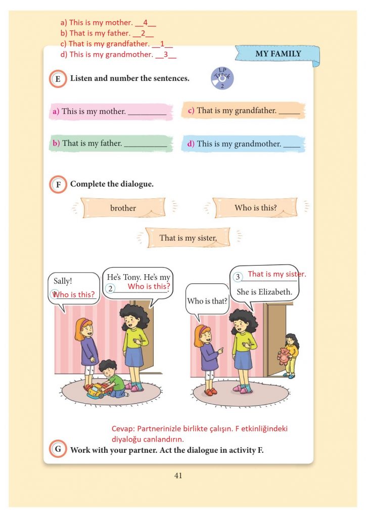 3. Sınıf İngilizce Ders Kitabı Sayfa 41 Cevapları Yıldırım Yayınları