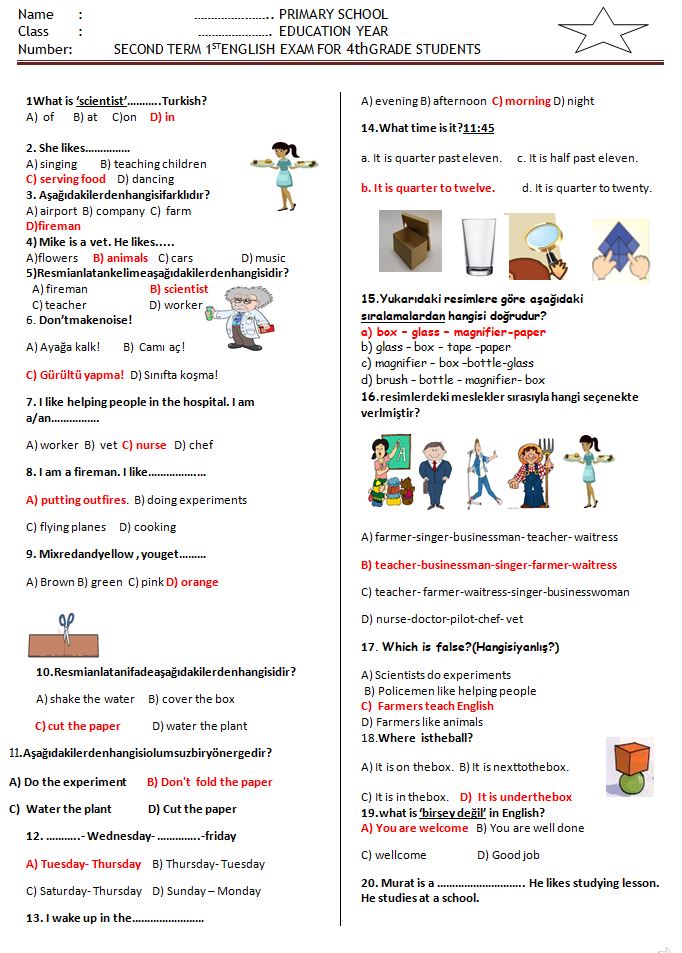 4.sınıf ingilizce 2.dönem 1.yazılı soruları cevaplı şekilde aşağıda indirebilirsiniz.