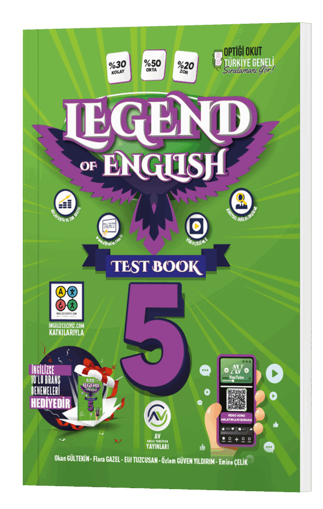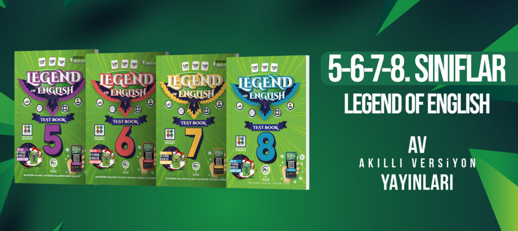 2025-2026 eğitim öğretim yılında güncel ders kitaplarıyla uyumlu 5. 6. 7. ve 8. sınıflar efsane kaynak Legend of English serisi AV Yayınları kalitesiyle İşler Kitabevlerinde.