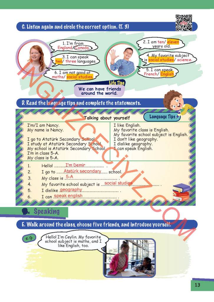 - SAYFA 13 CEVAPLARI 5. Sınıf İngilizce Ders Kitabı Cevapları MEB Yayınları