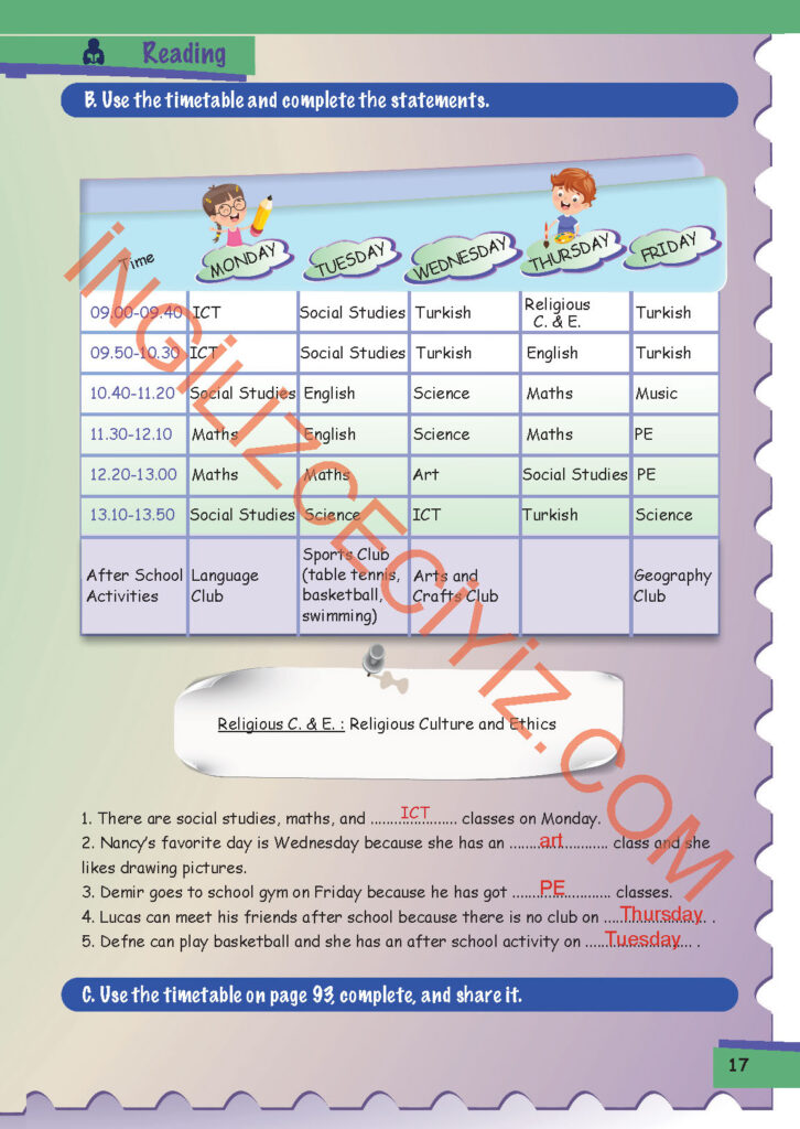 - SAYFA 17 CEVAPLARI 5. Sınıf İngilizce Ders Kitabı Cevapları MEB Yayınları
