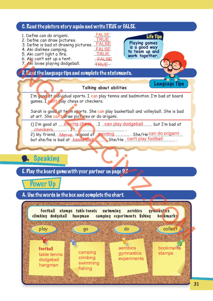 - SAYFA 31 CEVAPLARI 5. Sınıf İngilizce Ders Kitabı Cevapları MEB Yayınları