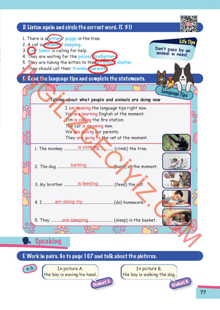 5. Sınıf İngilizce Kitabı Meb Yayınları SAYFA 77 Cevapları