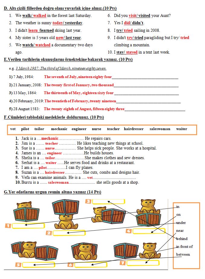 - 7. SINIF İNGİLİZCE 2. DÖNEM 1. YAZILI