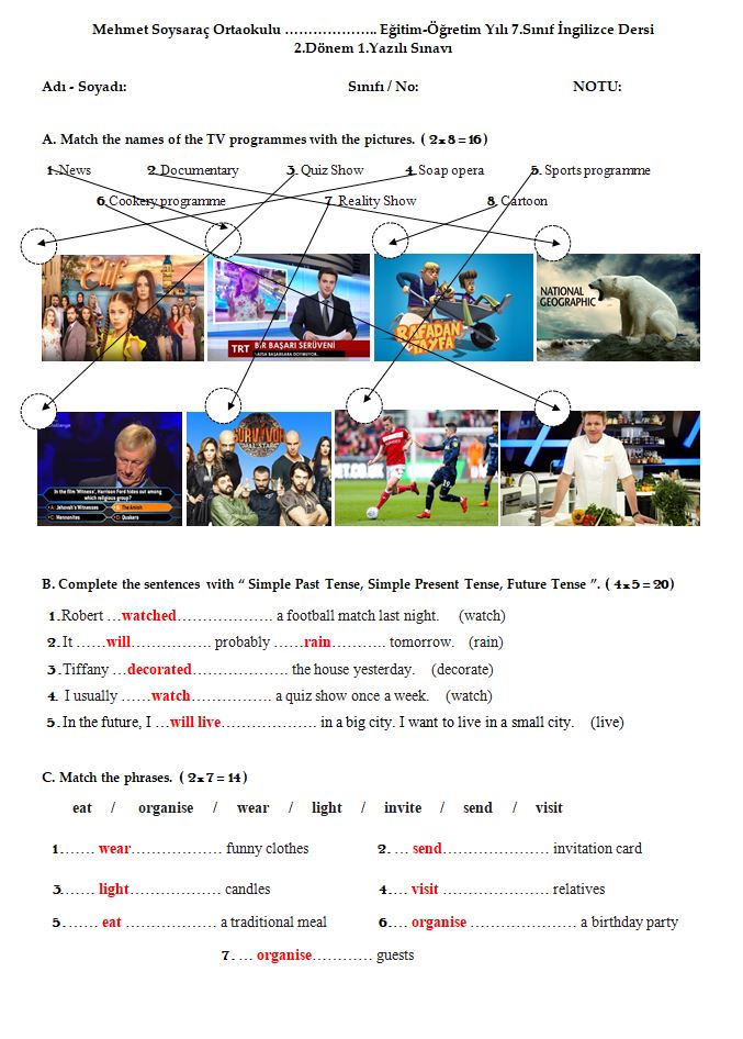 - Daha Fazla 7. Sınıf İngilizce Yazılı Soruları (1. ve 2. Dönem)