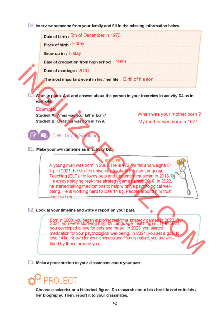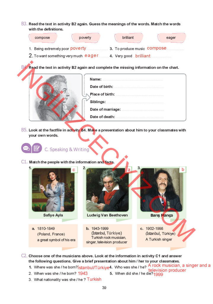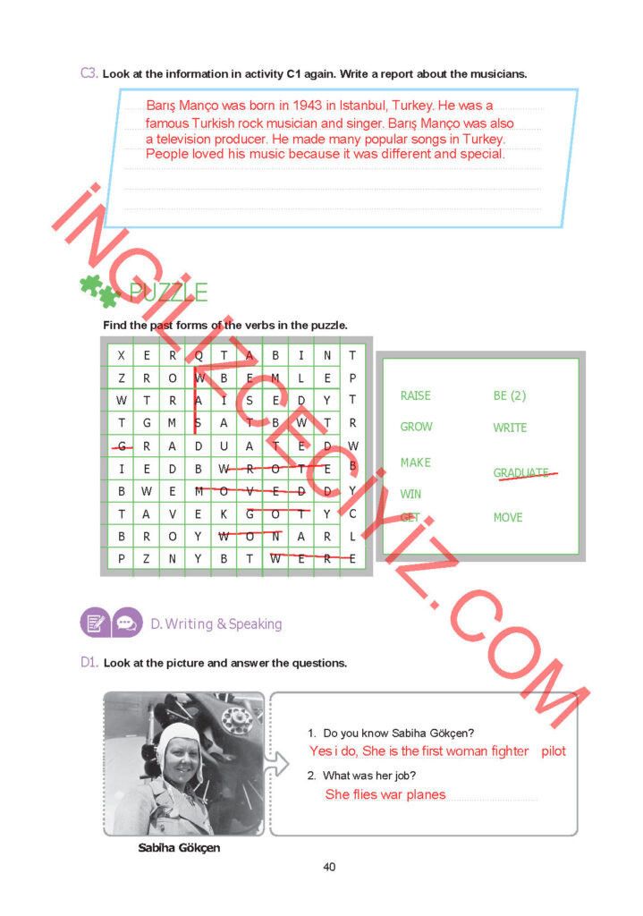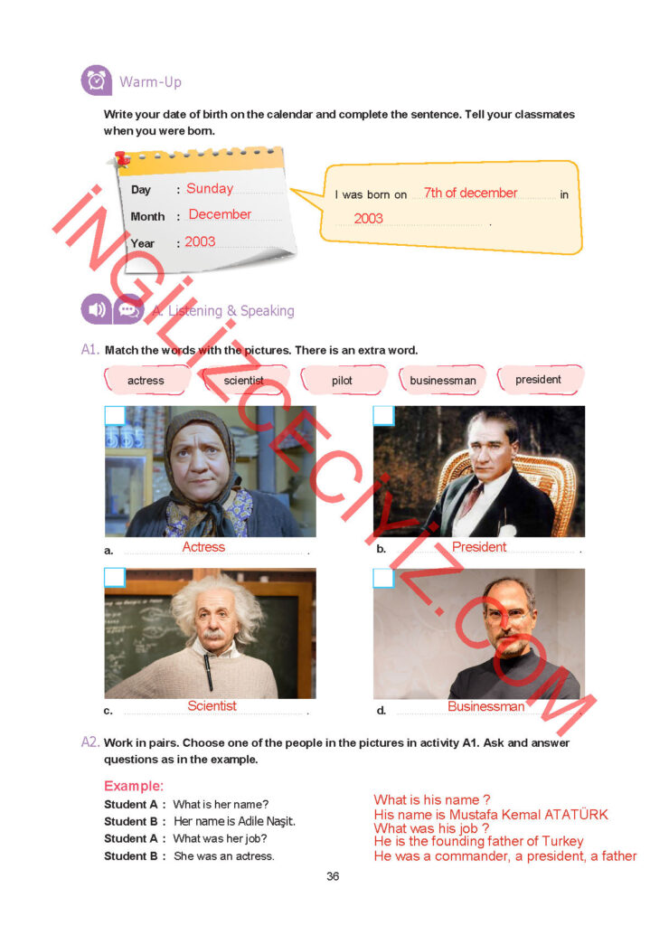7. Sınıf İngilizce Ders Kitabı Cevapları Yıldırım Yayınları 3. Ünite (Biographies)