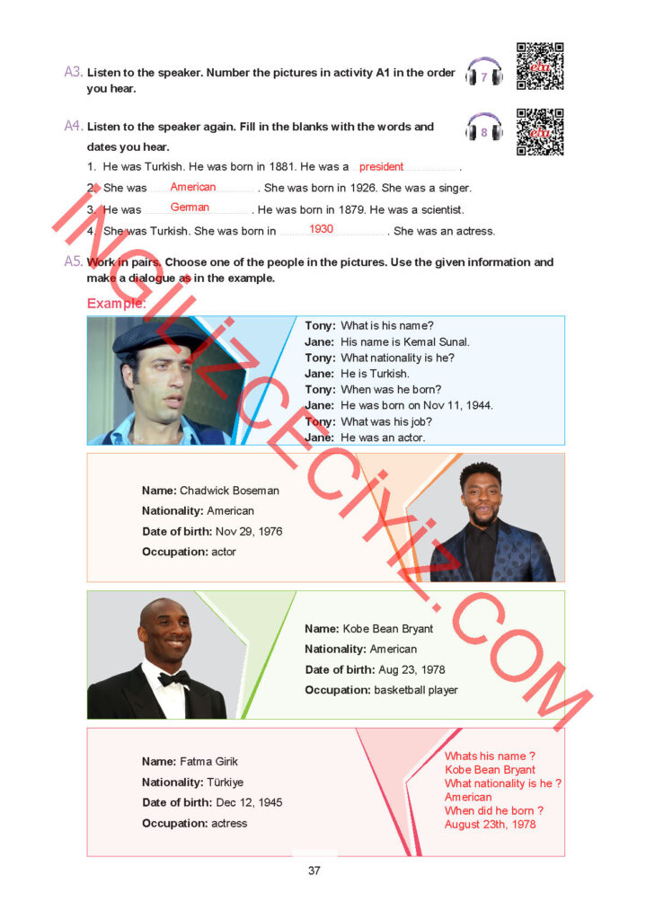 7. Sınıf İngilizce Kitabı Yıldırım Yayınları Sayfa 37 Cevapları