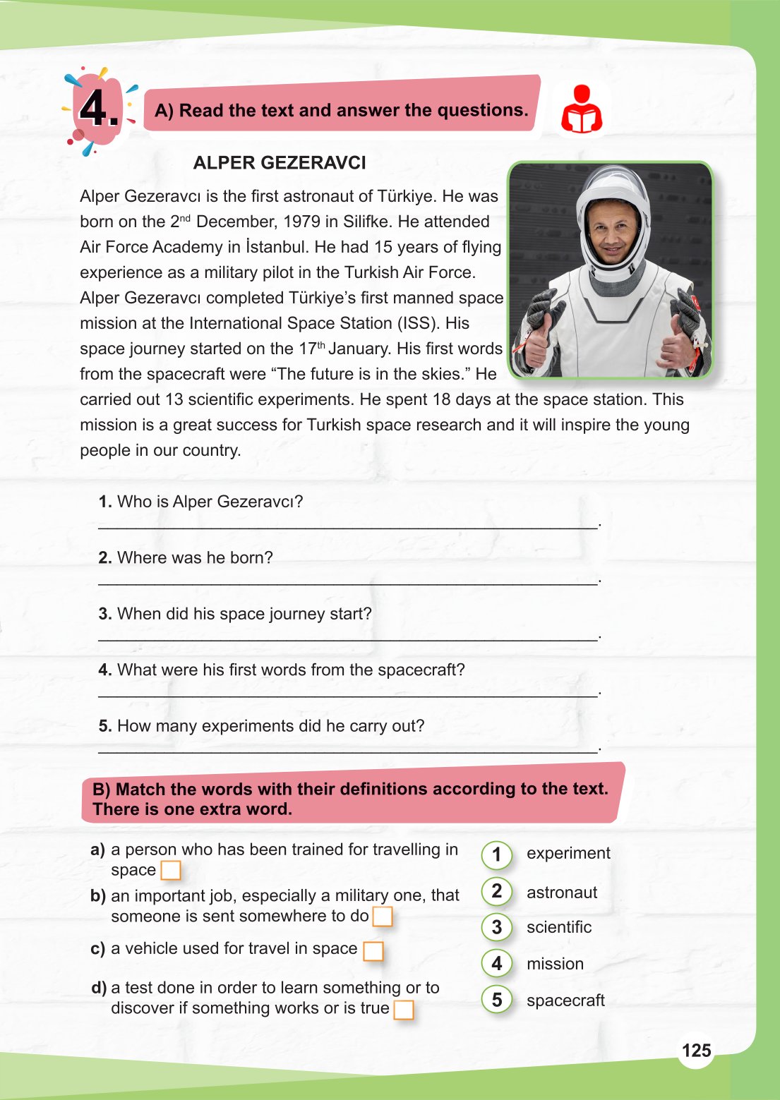 7. Sınıf Meb Yayınları İngilizce Ders Kitabı Sayfa 125 Cevapları sitemizde. Bu cevaplar ödevlerinize yardımcı olmak için aşağıda verilmiştir. 7. sınıf İngilizce Ders Kitabı sayfa 125 cevapları Meb Yayınları hemen görün.