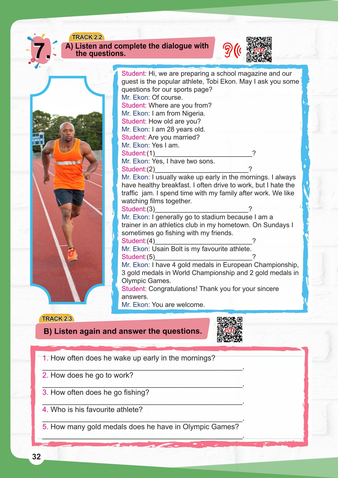 A) Listen and complete the dialogue with the questions. A) Dinleyin ve sorularla diyaloğu tamamlayın.