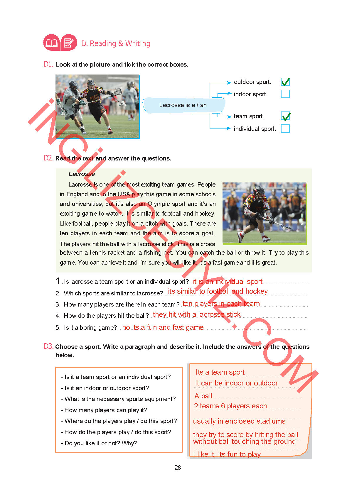 7. Sınıf Yıldırım Yayınları İngilizce Ders Kitabı Sayfa 28 Cevapları