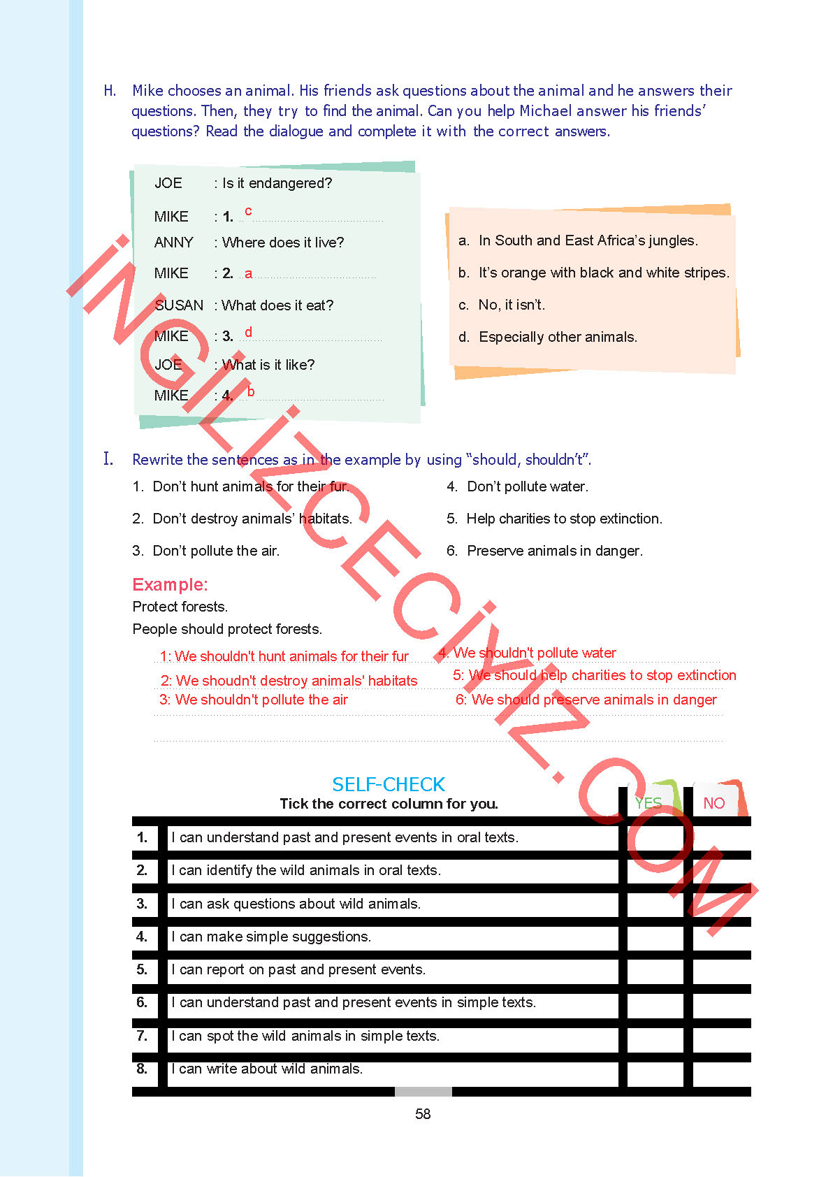 7. Sınıf Yıldırım Yayınları İngilizce Ders Kitabı Sayfa 58 Cevapları