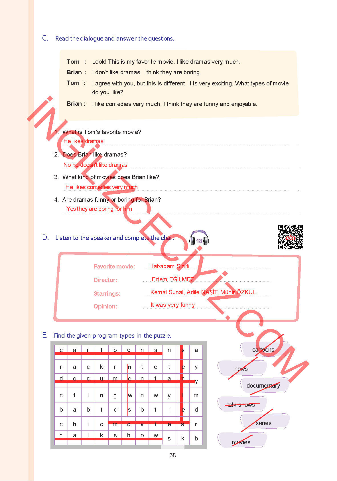 7. Sınıf Yıldırım Yayınları İngilizce Ders Kitabı Sayfa 68 Cevapları