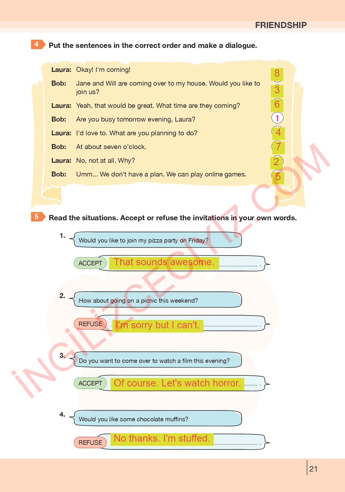 8. Sınıf Bilim ve Kültür Yayınları İngilizce Ders Kitabı Sayfa 21 Cevapları