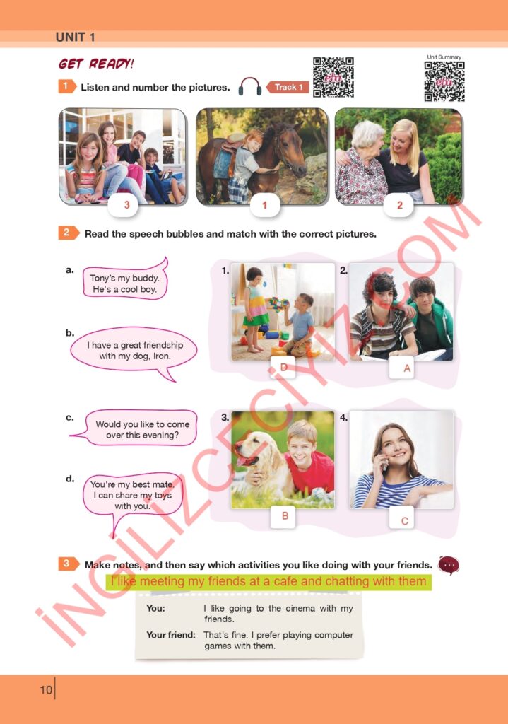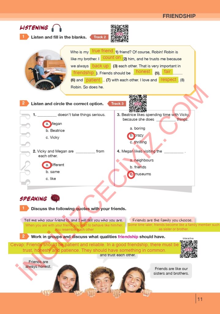 8. Sınıf İngilizce 1. Ünite Friendship Cevapları (Bilim ve Kültür Yayınları)