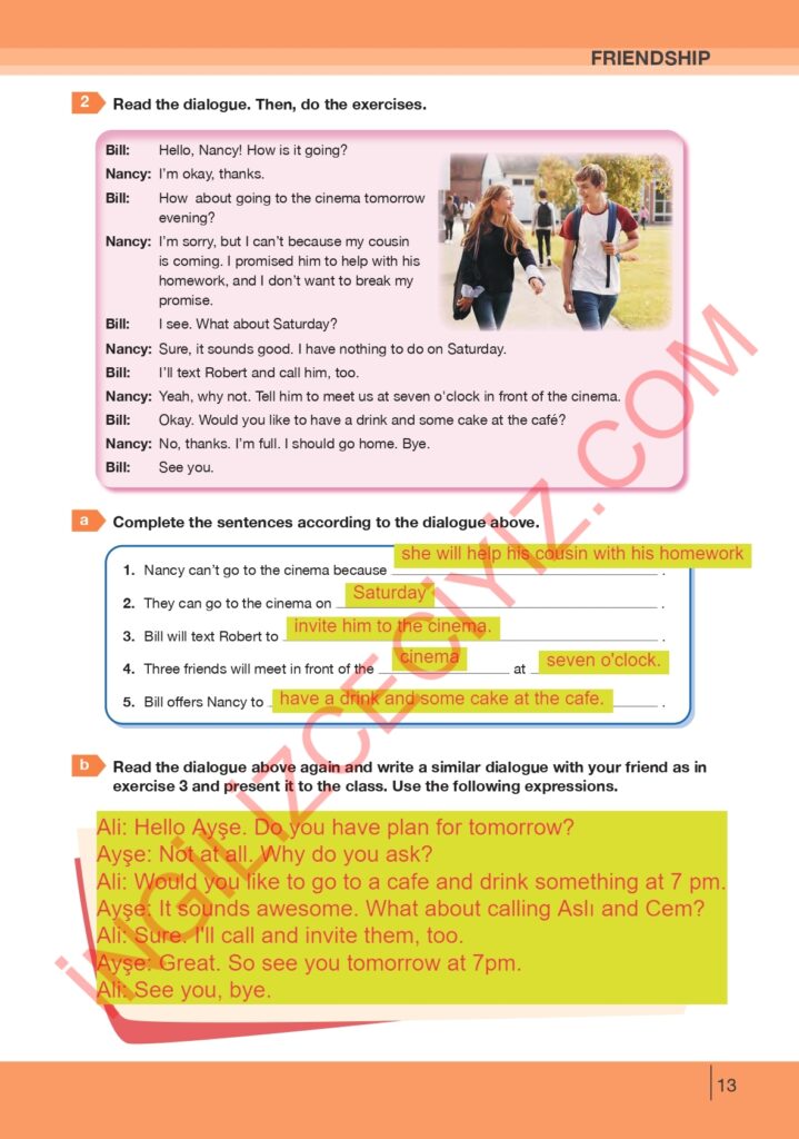 8. Sınıf İngilizce Kitabı Bilim ve Kültür Yayınları Sayfa 13 Cevapları