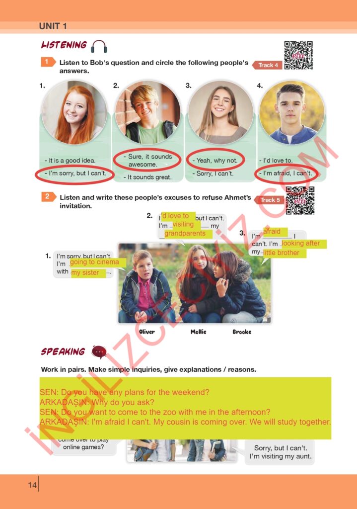 8. Sınıf İngilizce Kitabı Bilim ve Kültür Yayınları Sayfa 14 Cevapları