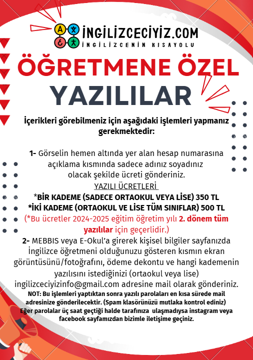 HERKESE AÇIK İNGİLİZCE YAZILI SORULARI İÇİN TIKLAYINIZ