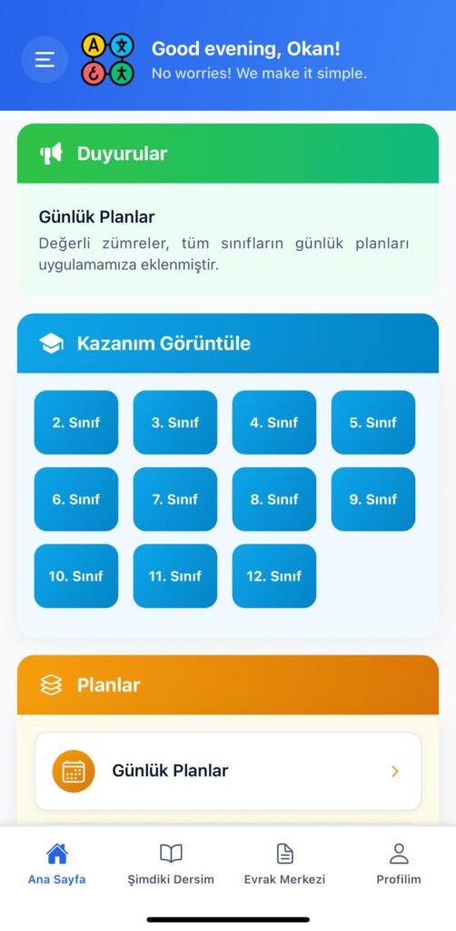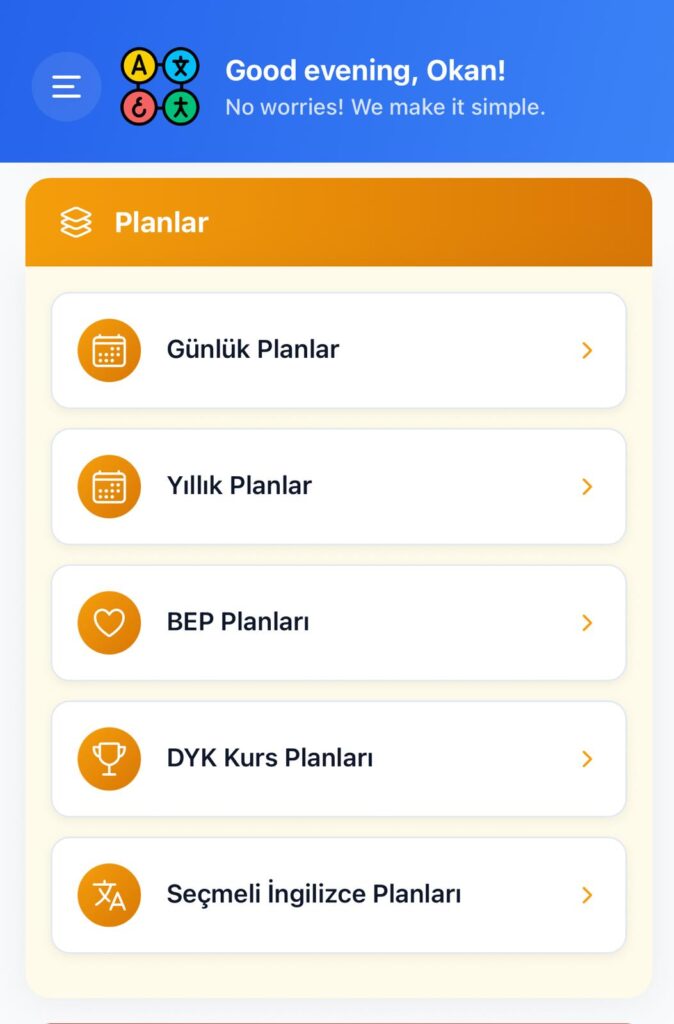 Yıllık planlar (seçmeli, dyk, BEP dahil), sınıf defterinizi kolayca doldurmak için ders kazanımları, günlük planlar, zümre ve şök toplantı tutanakları kısacası ihtiyacınız olan tüm evraklar uygulamamızda.