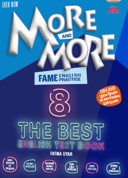 Fatma Uyar tarafından yazılan bu kaynak 8. sınıf öğrencileri için LGS’ye hazırlıkta çokça tercih edilen kaynaklardan bir tanesidir. Kitapta toplam 900 soru yer almaktadır. Her ünitenin ilk sayfasında önemli kazanım kelimelerin listesi yer almaktadır. Ortak kelimelerin yer aldığı kelime testleri ve soru köklerini anlamayı kolaylaştırıcı kelime testleri bulunmaktadır. Öğrencilere soru çözmede pratiklik kazandıracak “Kolay-Orta-Zor” olarak derecelendirilmiş testler yer almaktadır. Büyük boy, çok renkli ve çoğunluğu görsellerden oluşan sorular öğrencilerin ilgi ve dikkatini çekmektedir. Kitabı incelemek için buraya tıklayabilirsiniz.