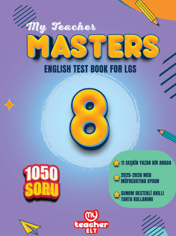Ezel Ballı hocamızın fark yaratarak 11 yazarla birlikte olutşturduğu My Teacher Masters kitabı farklı yazarların çoklu bakış açılarını yansıtarak geniş bir soru portföyü sunuyor. Öğrencilerin LGS’de karşılaşabilecekleri farklı bakış açılarını görmeleri ve tüm soru tiplerine hazırlıklı olmaları amacıyla “MASTERS TEST BOOK” adıyla çok yazarlı bir yaklaşımı benimsedikleri kitapta yer alan sorular, geçmiş yılların soruları titizlikle analiz edilerek hazırlanmış ve öğrencilerimizi sınava tam anlamıyla hazırlamayı hedeflemiştir. Kitabı incelemek için buraya tıklayabilirsiniz.