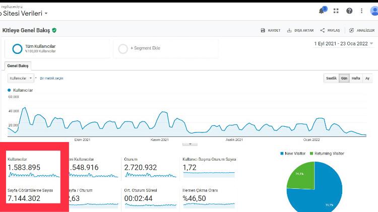 Sitemiz 2024-2025 eğitim öğretim yılında günlük 40bin ile 80bin arasında değişen ziyaretçi sayısıyla alanında Türkiye’nin en çok ziyaret edilen sitesidir.